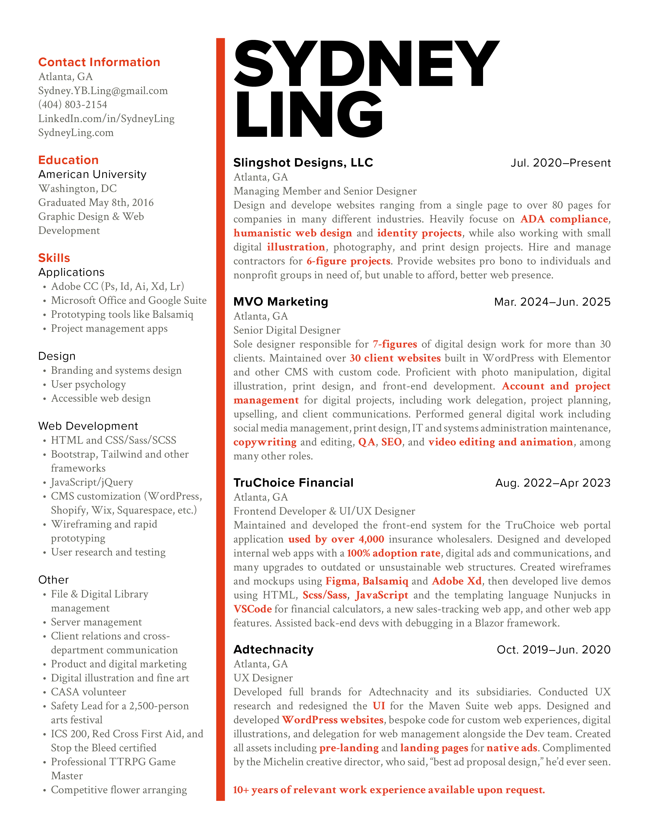 She's got nearly a decade of it. Her talent for creative problem solving is only rivaled by her ability to implement the solution. She fosters constructive dialogue among peers and clients alike, and thrives as a part of a team. You should really check out her resume. Or better yet...